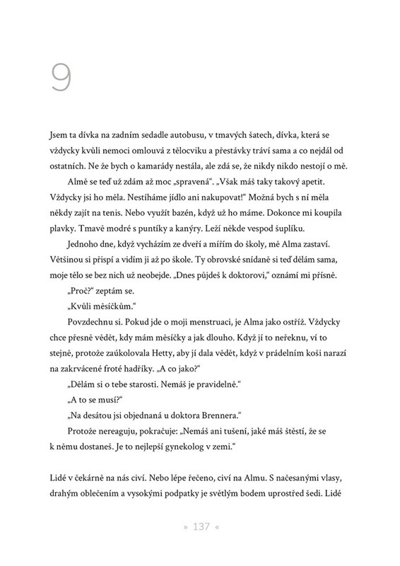 Padesát let neviděla Charlie svou nevlastní matku, padesát let nevkročila do rodného domu. Teď je ale Alma vážně nemocná – a právě tento víkend se nenajde nikdo, kdo by nemohoucí ženě pomohl. Jakmile Charlie překročí práh domu, vrací se jí vzpomínky na všechno to podivné chování a ponížení. Zdá se, že nic nemůže přehlušit nenávist k nevlastní matce. Pak ale Alma začne vyprávět. O válce, o tom, kolik lidí se vejde do vagónu na uhlí a co je to skutečný hlad. A taky o experimentech, Bloku 10, o Osvětimi… Pomůže děsivé svědectví překlenout vzájemnou propast?