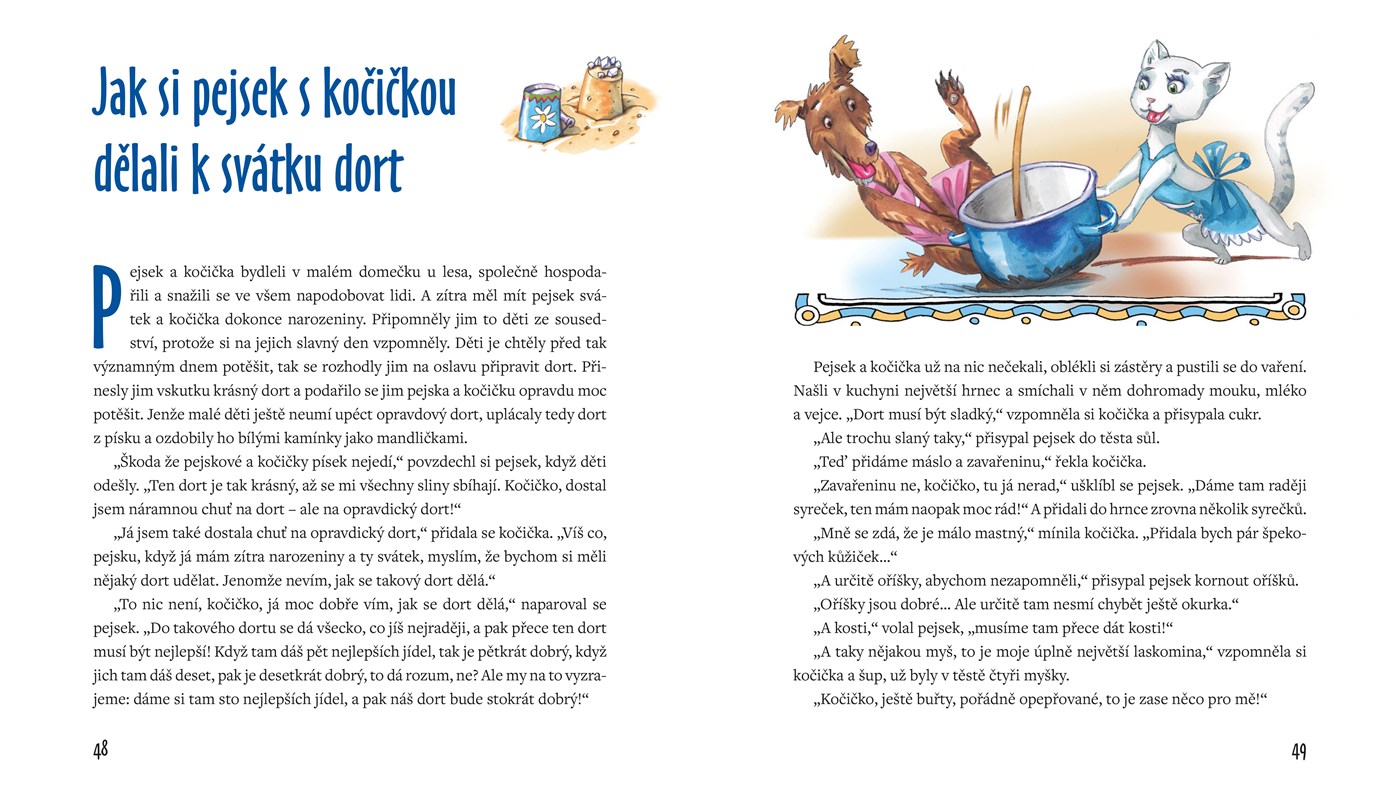 Pohádky o zvířátkách plné moudrosti, vtipu i poučení. Bohatě ilustrovaná kniha, kde se svou chytrost prokáže roztomilý kocour v botách, kde malá prasátka postaví své domečky, nebo kde loupežníky zaženou malí zvířecí kamarádi ze dvorku. Tyto a další klasické příběhy, které si my rodiče pamatujeme i ze svého dětství, čekají na další malé čtenáře.