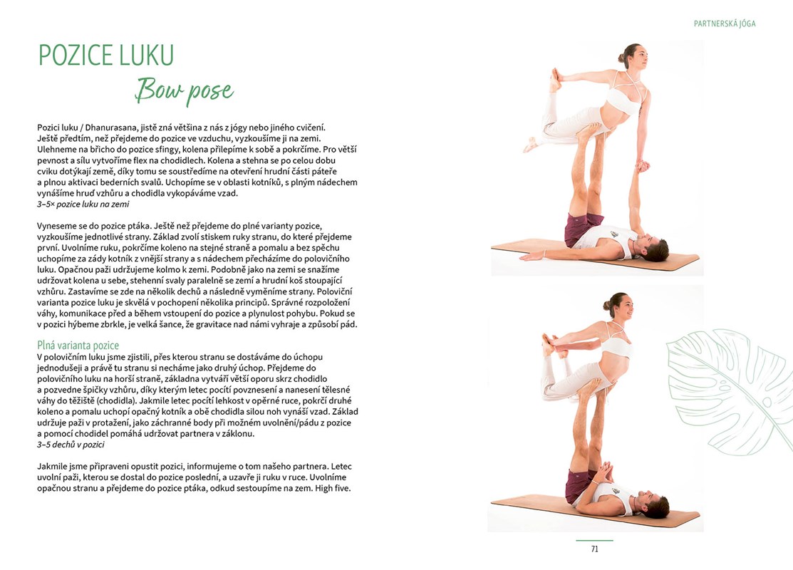 Tato kniha mladého lektora jógy vás zavede do světa, který možná neznáte, ale je snadné do něj vykročit. Naučíte se prožívat a praktikovat jógu s partnerem a vašimi blízkými. Toto cvičení vám pomůže budovat vzájemnou důvěru a respekt, sounáležitost a intimitu, naučíte se komunikovat a naslouchat druhým. Vybudujete si stabilitu v těle, budete umět pracovat s rovnováhou a později zvládnete i pozice, o nichž jste dosud neměli tušení, že je dokážete.