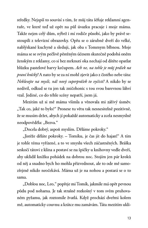 Lea neustále počítá – své kroky, hrášky na talíři nebo třeba listy na gumovníku v čekárně psychiatrické léčebny. Je posedlá pořádkem a život zvládá jen s pomocí rituálů a čísel. Teď počítá zbývající dny do okamžiku, než bude moct z blázince zmizet. Kdy to přesně bude, ví jen ona a Jay – floutek odsouzený k obecně prospěšným pracím, který si zde odpykává svůj trest. Lea ho načapala při krádeži a výměnou za mlčení mu nabídla dohodu. A on na ni se skřípěním zubů přistoupil...