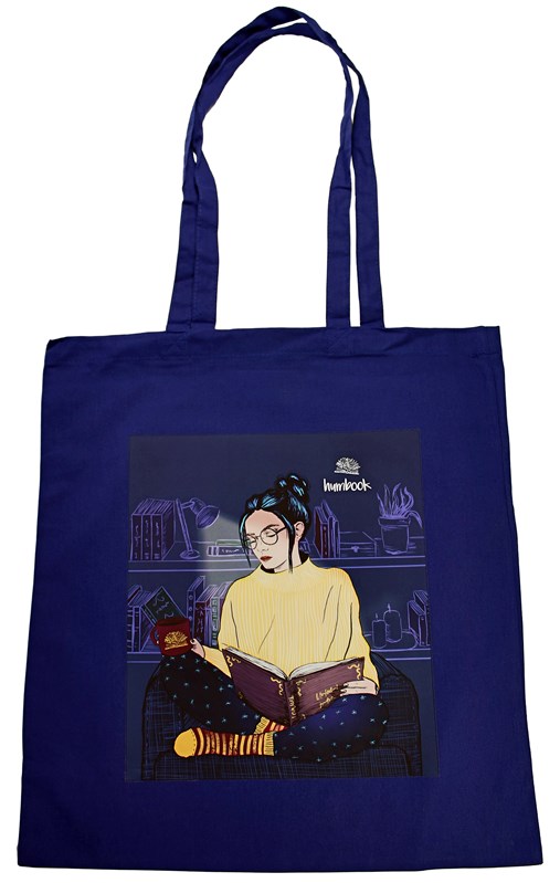Knihy v srdci, Hedvika na plátěnce. Taška s motivem začtené knihomolky.