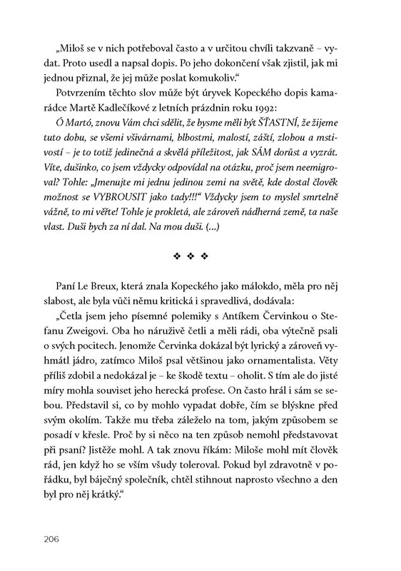 Základem knihy je nedokončená autobiografie Miloše Kopeckého. Svůj životopis začal psát sám, ale velkou část zápisků pod tíhou přílišné sebekritiky spálil.