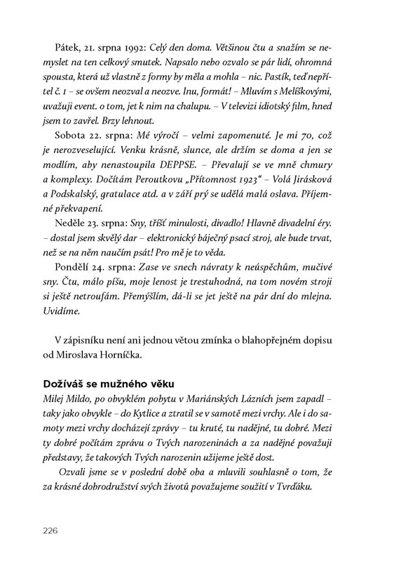 „Pokusím se o zpětnou procházku vlastním životem, vlastní minulostí. Pokusím se zachovat vše, pokud mi paměť dovolí, jak se skutečně odehrálo, a nebudu si nic vymýšlet: ostatně je stará omšelá pravda, že život je nejlepší autor. A je ovšem kýčař, který kašle na všechny estetické nároky a požadavky. Nebudeme se však stydět tu kýčařinu života předestřít čtenáři, neboť kýč života má svou zvláštní a nedostižnou sílu i půvab.“