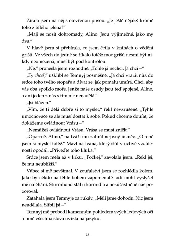„Příběh se odehrává ve fascinujícím a originálním světě bohatém na detaily. Griša je výjimečná, nepodobá se ničemu, co jsem doposud četla.“