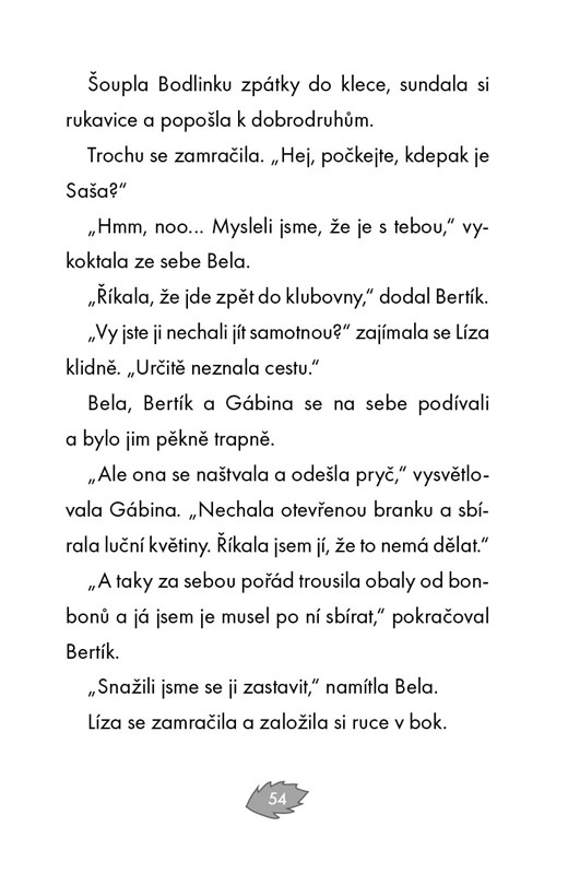 Izabela, Bertík a Gábina jsou členové Klubu zvířecích dobrodruhů. Milují zvířata a velice rádi se o ně starají. Když se jim donese zpráva o srnečkovi, který uvízl v plotě, ihned se pustí do jeho záchrany. Jejich nová kamarádka Saša však ještě nemá tolik zkušeností a práci jim začne komplikovat. Zvládnou složitou situaci vyřešit?