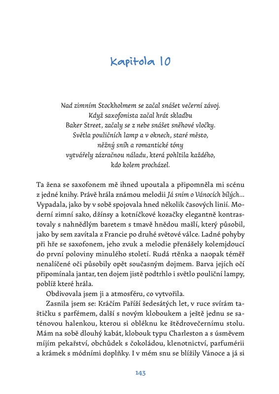 Tohle říká máma Lucii od jejích osmnácti, ale letos má pádný důvod, aby vše zůstalo při starém. Lucie se totiž chystá se svou kolegyní a zároveň tak trochu ezoterickou kamarádkou na nečekanou služební cestu do Anglie. Ještě předtím ale stihne přehodnotit některé pracovní vztahy, všimnout si, že jeden z jejích kolegů je vlastně velmi zajímavý muž a že to mezi nimi začíná jiskřit, poznat záhadnou saxofonistku, potkat starou lásku a zažít naplno předvánoční atmosféru a kouzla zimních chvil doma s rodinou i přáteli.