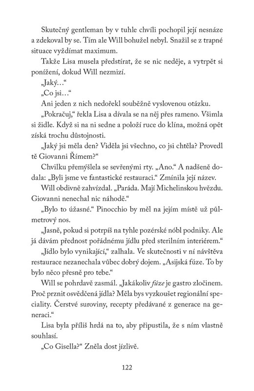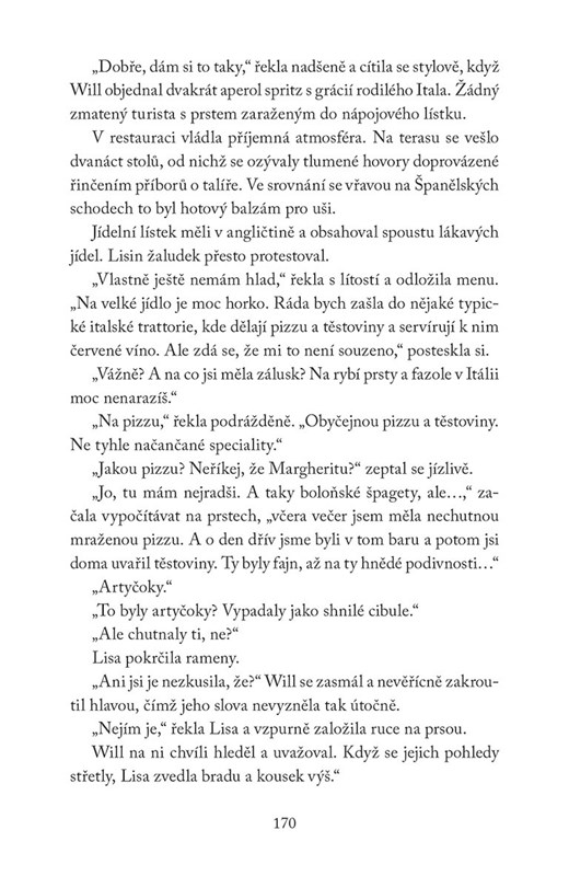 V Itálii to mezi nimi začne znovu jiskřit a Lisa se marně brání svým emocím. Nechtěla by totiž podruhé zažít stejné zklamání. Will je ovšem neodolatelný, samou ochotu se může přetrhnout, a navíc se vyzná v jídle. Řím přece není jen o památkách, espressu a pizze. Věčné město svádí k lásce. I k té, která už jednou nevyšla a do cesty se jí staví jedna překážka za druhou.