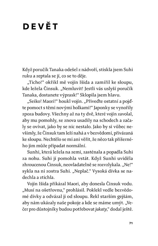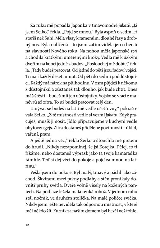 O jejich osudech se autor rozhodl vydat svědectví – a použil k tomu přitažlivý příběh o mladé dívce, vzácném hřebenu a dědictví císařské krve. Čtenář se v něm dozví mnoho o životě „žen pro útěchu“ i o konfliktu, který před desítkami let vedl k rozdělení Koreje – ale přesto román zůstává především příběhem o lásce, odvaze a naději.