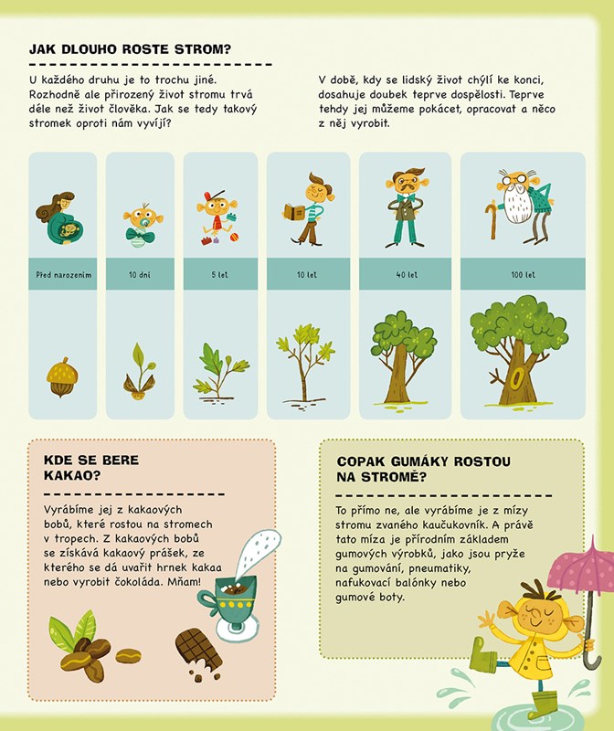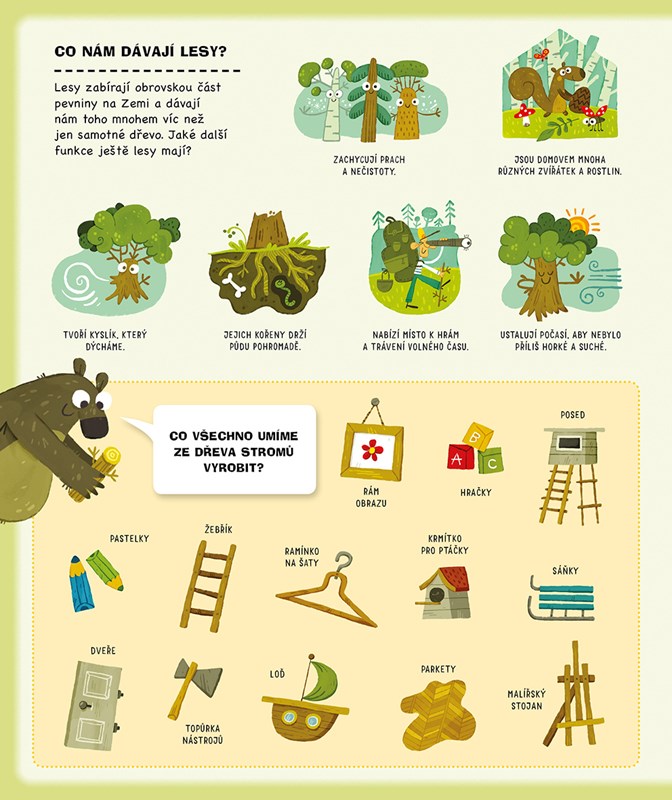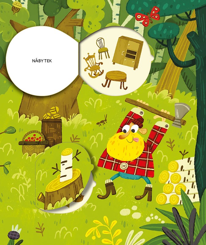 Napadlo tě někdy, odkud pochází věci kolem nás? Tužky sice nerostou na stromech a sušenky neposbíráš na poli, ale přesto mají původ v přírodě, stejně jako mnoho dalšího – nábytek ze dřeva, kovové příbory, včelí med nebo chleba. A my často ani nepřemýšlíme o tom, kolik práce dalo toto všechno vyrobit. Jak dlouho rostl strom, než se z něj stala židle, na které právě sedíš? Jak se z mléka od kravičky stala zmrzlina, která tě v létě ochladí? Tato knížka ti ukáže, z jakých materiálů jsou vyrobené věci z našeho každodenního života. Nakoukni pod odklápěcí okénka a objevuj, co všechno získáváme z přírody okolo nás.