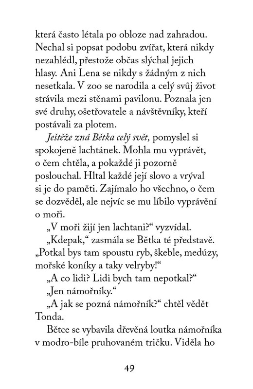 Až Bětka vyroste, chce pracovat jako ředitelka zoo. Miluje totiž zvířata, a navíc s nimi dokáže rozmlouvat.