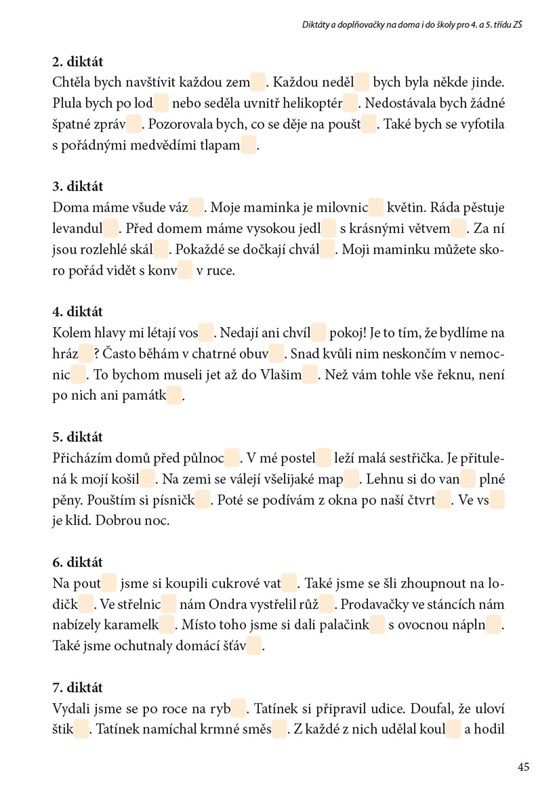 Osvojit si některé pravopisné jevy nemusí být snadné. Jedinou cestou k úspěchu je vytrvalý trénink. A protože diktátů či doplňovaček není nikdy dost, připravili jsme sešit plný cvičení, která jsou zaměřená na mluvnické jevy probírané ve 4. a 5. třídě ZŠ. Využít jej mohou rodiče s dětmi během domácí přípravy, ale i učitelé.