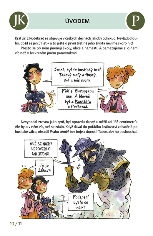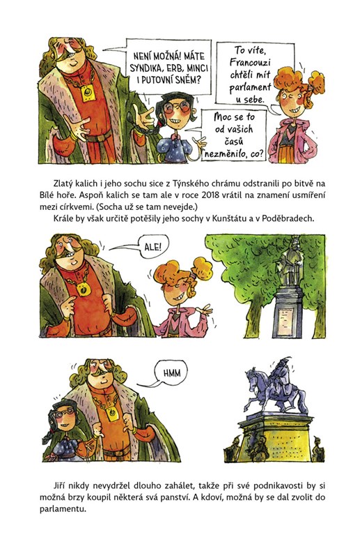 Více se dozvíte v sedmém díle edice Velikáni do kapsy, v němž Bětku (která bydlí v Kunštátu) a Sáru (která bydlí v Poděbradech) provázejí dva vypravěči, králův šašek Paleček a duch Jana Žižky z Trocnova.