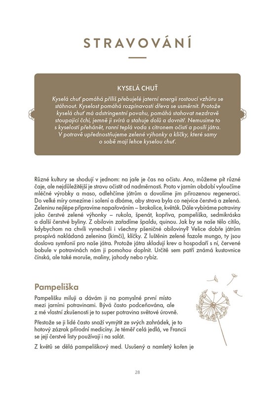 Dozvíte se, jak fungují naše orgány v rámci dne, kdy je potřeba jim dopřát oddech, stimulací doporučených meridiánových drah můžete vylepšit své zdraví - fyzické i psychické. Autorka vám také doporučí vhodné složení stravy, jaké bylinky máte používat v aromaterapii, a naučí vás meditace - vše vždy pro daný element, tedy konkrétní období v rámci roku. Velkou část knihy tvoří doporučené cvičení jin jógy, sestavené pro každý element zvlášť.