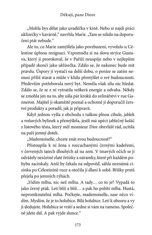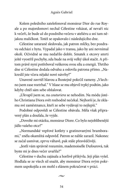 V roce 1947 se svět stále potýká s následky války, ale po těžkostech a šedi válečných let lidé zase začínají toužit po kráse. Diorova okázalá první kolekce s názvem New Look se tak rychle stane mezinárodní senzací a Celéstine je zcela pohlcena prací v oslnivém módním světě. A přestože se kvůli předchozím zklamáním uzavřela před láskou, i na ni čeká vytoužené štěstí.