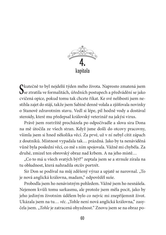 Krásná princezna a hříšně nádherný herec. Milostný románek, který zaručeně otřese britskou monarchií… a vlastně i celým světem. Dívka s modrou krví Adeline a hollywoodský idol Josh Jameson dobře věděli, že jakákoliv jejich společná budoucnost je nemožná. Ona je princezna, která musí ctít protokol, on je slavná celebrita, kterou na každém kroku pronásledují davy nadšených fanynek. Spalující vášeň, která mezi nimi náhle vzplála, se však brzy přetavila v silný vztah. Fyzické se stalo emocionálním. Jejich srdce se propletla stejně dokonale jako jejich těla. Do nádherné lásky však zasáhne krutý osud – Adeline se má stát po tragické události v rodině královnou, to ovšem znamená nechat se spoutat těžkými okovy povinností a poslouchat armádu rádců, kteří udělají vše pro to, aby Joshe udrželi od Jejího veličenstva co nejdále...