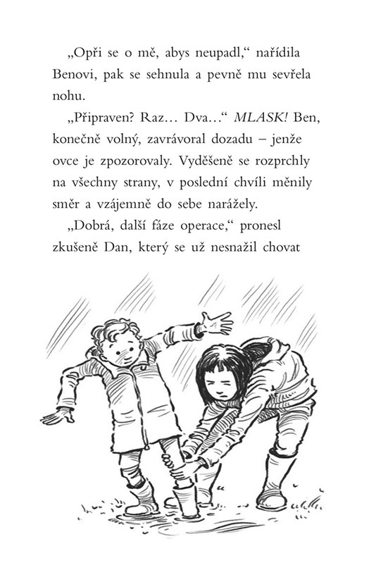 Už celý týden prší a malý Ben se raduje, že nebude muset do školy. Právě bylo vyhlášeno nebezpečí povodní. Hladina nezadržitelně stoupá a Ben si všimne, že na pastvině, kterou již voda zaplavuje, uvízlo jehňátko. Podaří se zachránit zmoklého trosečníka a vrátit ho k jeho mamince?
