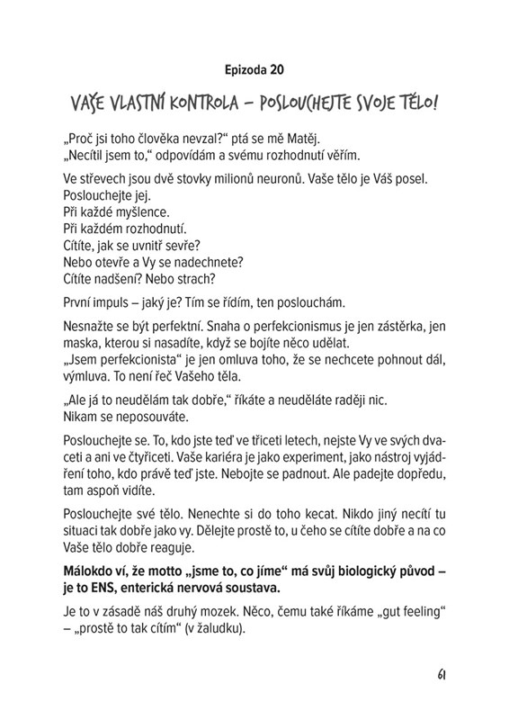 Autoři Kaťa Toholová a Michal Vydržel se vlastně ani nehledali, ale naštěstí se našli. Spojením Katiny jemné novinařiny a velice empatického vysvětlovaní a Michalova Wall Street – hokejistického přístupu „narovinu“ vznikla kniha, která zodpoví všechny čtenářovy otázky a vyburcuje ho k akci.