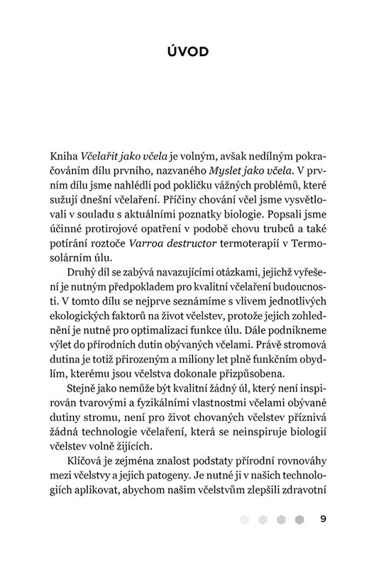 „Smyslem této knižní série není nic menšího než změnit od základu včelařský obor předložením nové a nadčasové teoretické báze chápání včelstev i řešení závažných včelařských problémů současnosti. Řešení zde propagovaná jsou polyfunkční, berou ohled nejen na zájmy včel, ale také včelaře. Hovořím o včelaření přírodě blízkém, časově nenáročném a téměř bezpracném. Zde uvedené metodiky jsou velmi vhodné pro každého, kdo chce mít nejen čisté svědomí ve vztahu ke svým včelám, ale také nadprůměrné medné výnosy, a to s minimem investovaného času a práce.“