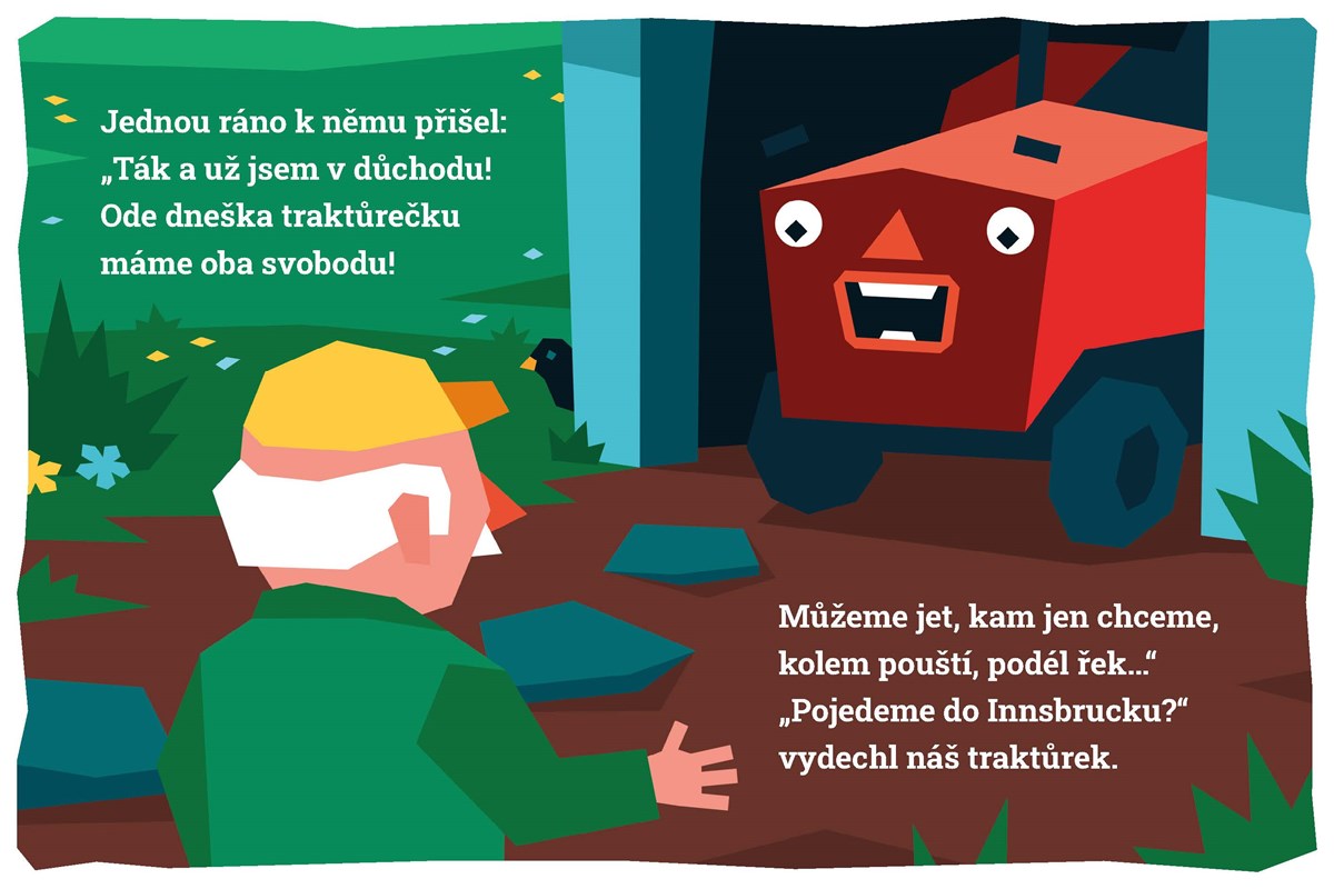 Poutavé leporelo z pera oceňovaného básníka Robina Krále vypráví o traktůrku, který se vydává za dobrodružstvím. Bere s sebou i nerozlučného kamaráda Karla a společně míří přímo na jih. Pojeďte s nimi, nebudete litovat!