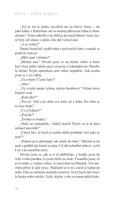 V prvním dílu se Nicole musela vyrovnat s extrémními změnami. Ztrátou otce a přestěhováním z Aljašky do Kalifornie přišla o svůj starý život. Pak poznala Daniela, který ji okamžitě začal zasvěcovat do pro ni neznámého světa surfování i temné erotiky. Že se topila? To se jen plácala na mělčině. Nyní ji čekají temné hlubiny Danielova života. Vše, na co si jen těžko zvykala, se obrátí vzhůru nohama. Můžete očekávat velké návraty, odkrytí nevyřčených tajemství a zvraty, které zamávají životem téměř všem postavám. Těšit se nově můžete i na kapitoly z pohledu Daniela, protože hlavně jemu se nečekaně změní život od základů.