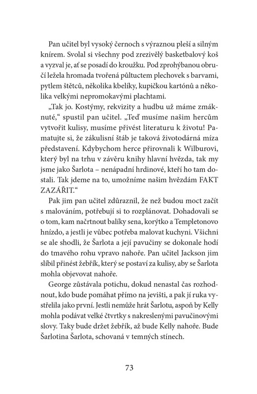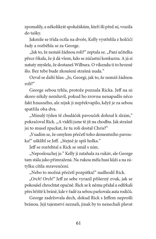 Každý, kdo se na ni podívá, si myslí, že vidí kluka. Jenže Melissa ví, že je holka. Možná by si to nechala navždy pro sebe, ale pak se dozví, že letošním školním představením bude Šarlotina pavučinka. A Melissa hrozně, hrozně, HROZNĚ MOC chce hrát hlavní dívčí roli – Šarlotu. Jenže paní učitelka tvrdí, že se o roli nemůže ani ucházet… protože je kluk. A tak Melissa s pomocí své nejlepší kamarádky vymyslí plán. Nejen aby mohla hrát Šarlotu, ale aby se všichni jednou provždy dozvěděli, kým doopravdy je.