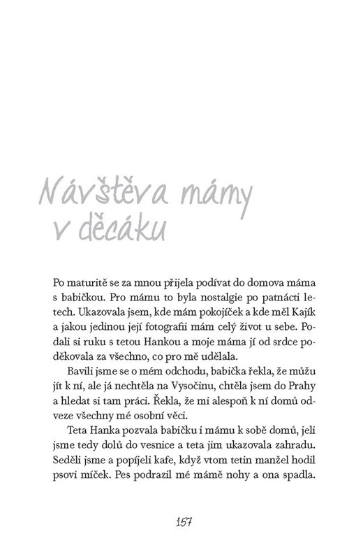 Tato zpověď byla napsána z touhy změnit svět k lepšímu. Pokusit se alespoň maličkou troškou přispět k tomu, aby třeba i jen pár dětí bylo šťastnějších, a to je zatraceně dobrý důvod, proč tuhle knihu vydat a číst. A vlastními slovy autorky: „Jsem přesvědčená, že jsem byla v dětském domově a prožila všechny ty okamžiky právě proto, abych dnes mohla pochopit ostatní opuštěné děti a abych jim mohla nabídnout pomoc, jsem jedna z nich, a i když existují nepochybně děti, které mají silnější příběhy nebo smutnější, tak věřím v to, že má kniha zvedne ze židle třeba i jen jedno dítě a řekne si: ‚Nezáleží na tom, kdo je má matka či otec, záleží na tom, KDO JSEM JÁ!‘“