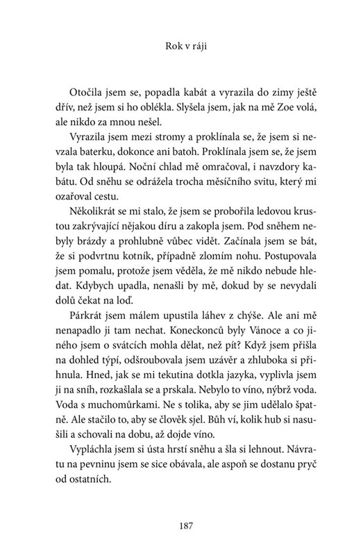 Jednou účastnicí experimentu je také Maddy, která se vyzná v botanice a může tak pro všechny bezpečně sbírat kořínky a bobule. Má sice odborné znalosti, ale navazování vztahů není její silnou stránkou. A když se ve skupině začnou tvořit aliance, Maddy zjišťuje, že do žádné z nich nezapadá. Jak měsíce ubíhají, skupina se dál tříští, z přátel se stávají nepřátelé a samotářská Maddy je snadnou kořistí.