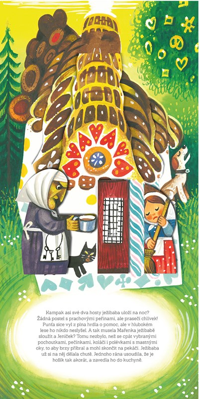 Představte si, že byste se ztratili v temném lese a namísto domů byste dorazili k chaloupce celé z perníku. Co byste dělali? Když se to stalo Jeníčkovi a Mařence z naší pohádky, bez váhání perníček ochutnali, a to ještě netušili, jaké dobrodružství je čeká. Přečtěte si znovu klasickou pohádku bratří Grimmů, tentokrát v jedinečném prostorovém provedení slavného českého výtvarníka Vojtěcha Kubašty.