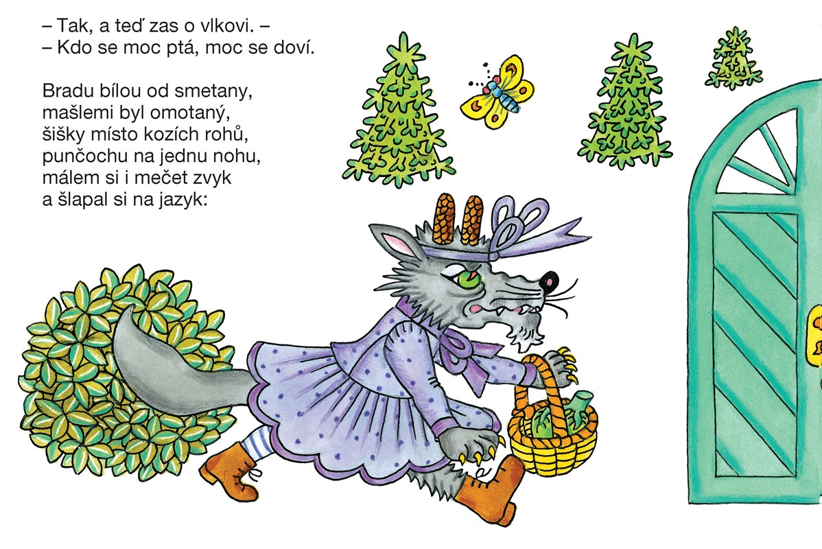 „To jsem já, bradička bílá! Otevřte, kůzlátka milá. Nesu sladké zelíčko,tak otevřte maličko!“ – Těmito líbeznými slůvky vlk přemlouvá kozlátka, aby mu otevřela, vyparáděný tak, že se musí děti smát, jak mu klobouk s pentlemi padne. Jedna z nejoblíbenějších dětských pohádek, kterou děti znají nazpaměť od nejútlejšího dětství. Verši doprovází Věra Provazníková.