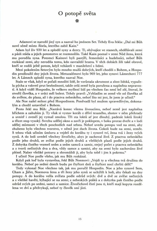 Když v roce 1939 nabídlo nakladatelství Melantrich Ivanu Olbrachtovi, aby do připravované edice pro mládež upravil Bibli, přijal s radostí. S neobyčejným mistrovstvím převyprávěl starozákonní děje o stvoření světa, o Adamovi a Evě, o Mojžíšovi, o potopě světa, babylonském zajetí, o Davidovi a Goliášovi... Krásným slovem dal nahlédnout do moudrosti a poselství příběhů „knihy knih“. Kdo je zná, lépe porozumí některým románům, básním a divadelním hrám, pozorněji prochází mezi obrazy v galeriích.