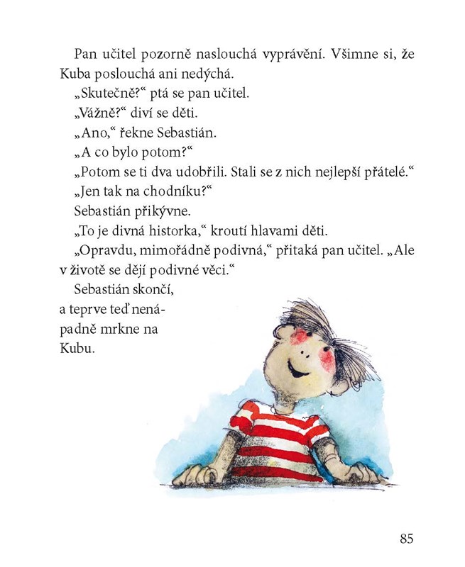 Kuba nerad prohrává. A zvlášť teď, kdy do třídy přibyl kluk Sebastián. Žil s rodiči ve Velké Británii, samozřejmě umí výborně anglicky, skvěle vypadá a vůbec… Spolužačky jsou nadšené, Kuba otrávený. Ale nevzdá se. Nezlomí ho ani nový miláček děvčat, ani nový pan učitel!