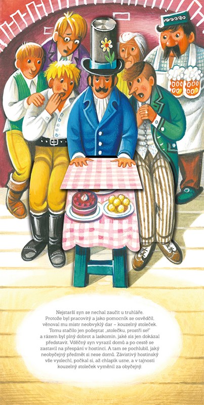 Tři bratři se vydávají do světa na zkušenou a za svou práci si každý z nich vyslouží neobyčejný dárek: stoleček, který nabídne ty nejvybranější dobroty, oslíka, ze kterého se sypou dukáty, a kouzelný obušek. Bratři ale nakonec zjistí, jak je snadné přijít o to, co člověk jednou nabyl. Získají své dary zpátky? Nechte se vtáhnout do známé pohádky, tentokrát v prostorovém provedení od Vojtěcha Kubašty, jehož knihy si zamilovali čtenáři po celém světě.