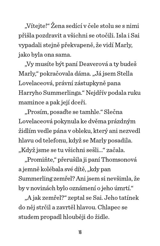 Marly poznala pana Summerlinga jako milého, leč poněkud podivínského souseda, který chodil po okolí s detektorem kovů a říkal o sobě, že je hledač pokladů. Nikdy by nevěřila, že se do podobného pátrání pustí i ona. Pan Summerling totiž ve své závěti jí a dalším dvěma dětem jeden poklad odkázal. Má to však několik háčků. Musí vyřešit řadu hádanek, rébusů a indicií, aby zjistily, kde se nachází. A nejen to, musí na tom pracovat společně – na což se Marly vůbec netěší.