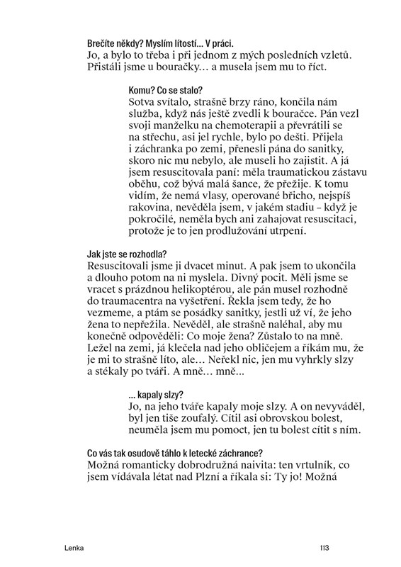 – Lenka Haindenggerová, lékařka – záchranářka, když říkala pánovi, že jeho žena autonehodu nepřežila.