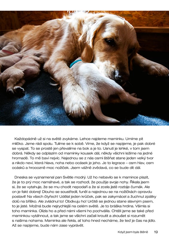 V domku u Trnkové zahrady se narodí osm štěňátek – zlatých retrívrů. Aby je bylo možné od sebe rozeznat, dostanou barevné obojky. Ta s růžovým obojkem, tedy slečna Růžová, komentuje všechno, co ona a její sourozenci zažívají, jak rostou a jak objevují nové věci okolo sebe. Jejich maminka Viki jim každý večer před spaním vypráví pohádky. Z nich se dozvídají, co všechno je třeba se naučit, aby z nich vyrostli správní psi. Jednoho dne však přijde okamžik rozloučení, kdy všichni musejí od maminky odejít k novým páníčkům…