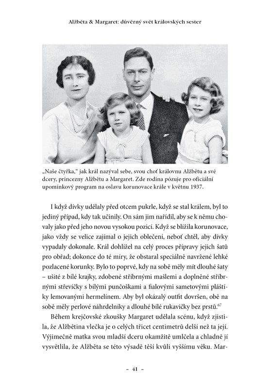 Poutavý životopis bestsellerového autora New York Times sleduje královnu Alžbětu II. a její sestru Margaret, jak se pohybují v záři královských reflektorů. Zabývá se jejich vztahem v průběhu let, od idylického dětství přes skrytý válečný život až po rozdílné cesty, kterými se vydaly po smrti svého otce a nástupu Alžběty na trůn.
