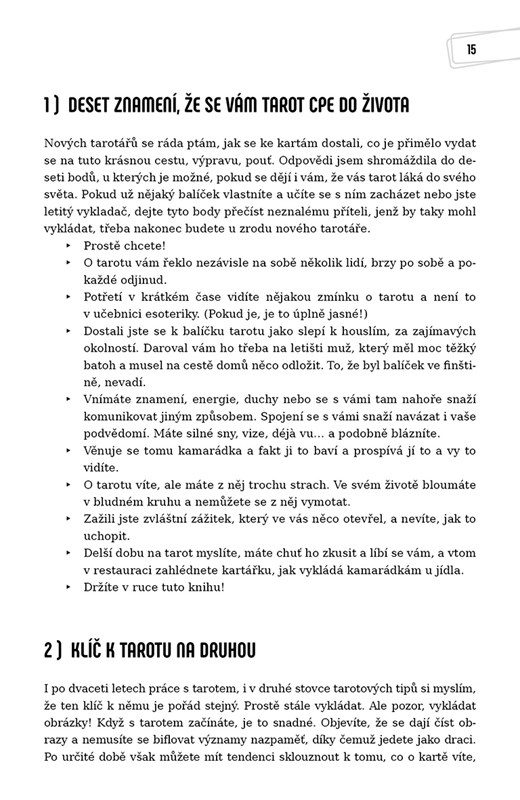 Máte zase čas na tarot? V druhém dílu stejnojmenné knihy najdete dalších sto jedenáct praktických, hravých a jednoduchých tarotových tipů. Díky nim zjistíte, jak si karty vyložit, na co se zaměřit, jak tarot lépe poznat a jak porozumět tomu, co vám nebo vašim tazatelům chce říct. V knize objevíte i mnoho jiných témat, která při výkladu chtě nechtě vylézají na povrch. Vše vlastní hlavou vymyšleno, opřeno o znalosti učitelů, neustále zkoušeno na lidech i na zvířatech a předáno tak, aby se to dalo nejen číst, ale i dělat. Hlavně dělat.