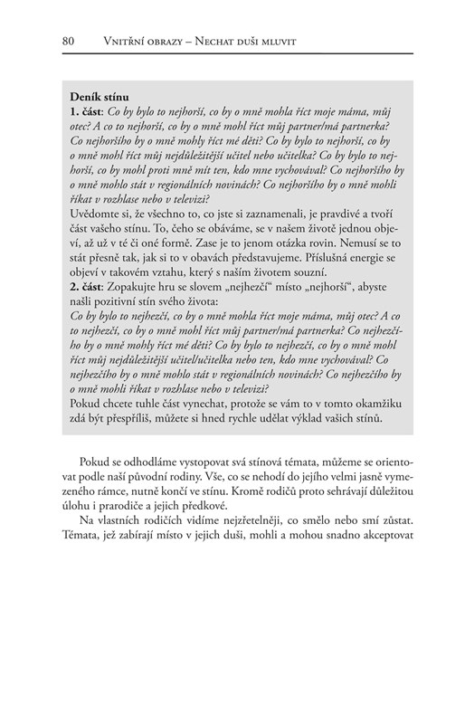 Ruediger Dahlke nám ukazuje, jak svůj stín vypátrat a jak se s ním konfrontovat, abychom ho nakonec mohli přijmout, integrovat do své osobnosti, a možná dokonce i začít milovat. Ten, kdo se pustí do práce na svém stínu, jak je představena v knize, se stane otevřenějším, laskavějším a tolerantnějším – vůči sobě i vůči jiným.