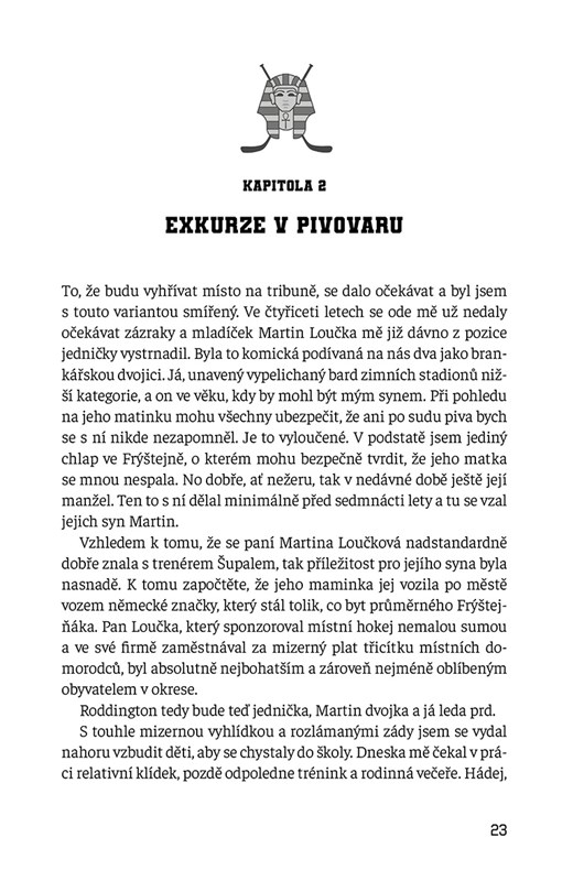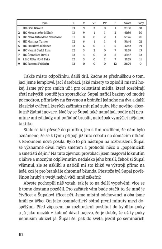 Humoristický sportovní román o náhradním brankáři ledního hokeje, který potřeboval nový impulz.