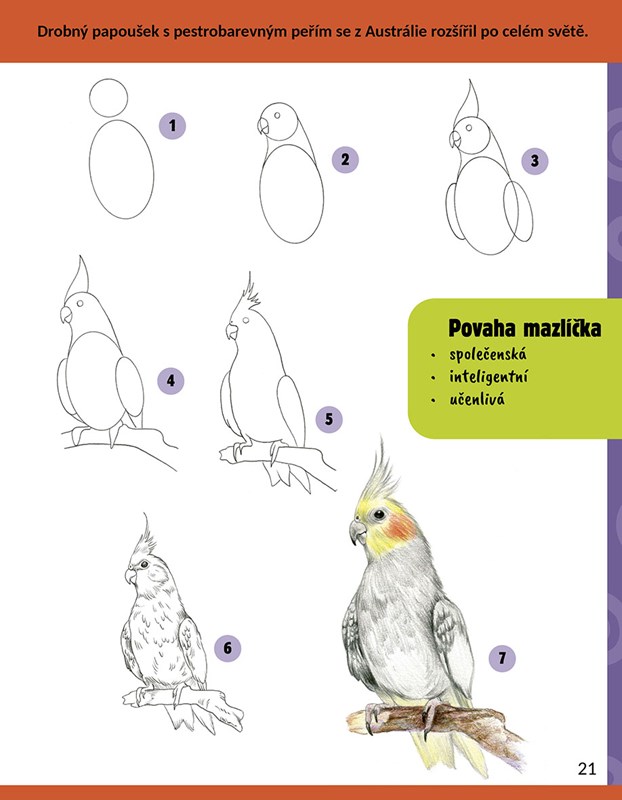 Díky jednoduchým návodům se různé zvířecí mazlíčky naučí kreslit i docela malí umělci. Dozví se o nich základní fakta i překvapivé zajímavosti a také si užijí pěkné barevné fotografie.