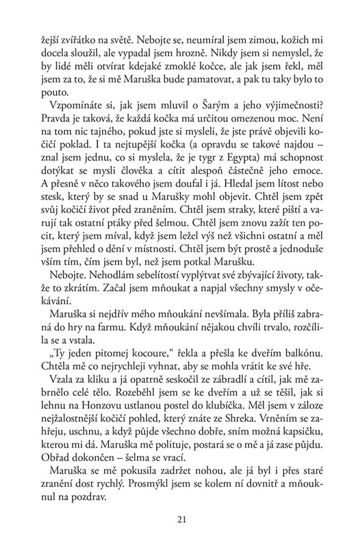 Kocourek Šíva si žije v blahobytu. Je obletován svými lidskými sluhy a kromě svých vlastních potřeb se o nic jiného nezajímá. Dokud ho jednoho dne nesrazí auto a osud ho nezavede za Maruškou. K jeho smůle je to sobecká holčička a k dětem ani zvířatům se nechová zrovna hezky.