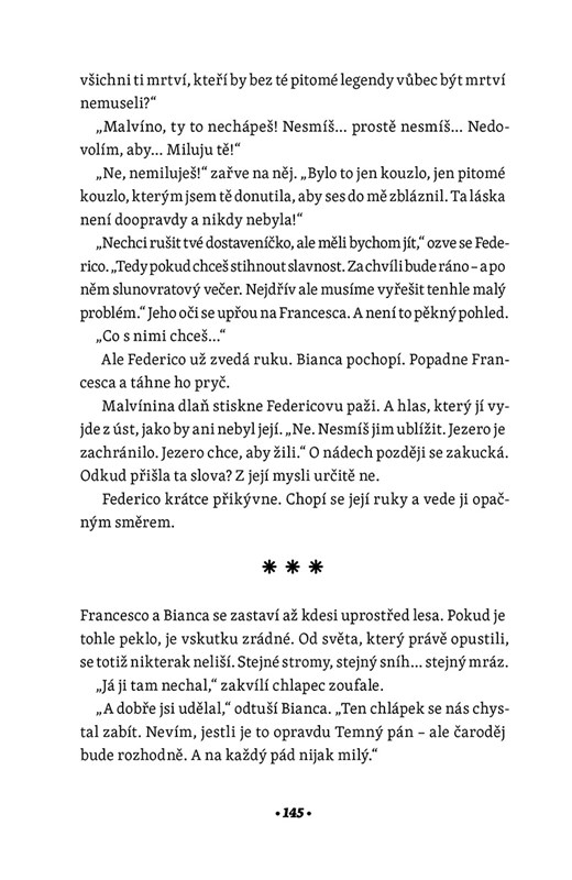 Malvína je dívka s vědeckou myslí a nohama pevně na zemi. Až do chvíle, kdy jí zkříží cestu tajemný mladý čaroděj a mluvící Jezero. Události, které následují, rozmetají dívčin starý život na kusy. A zdaleka ne jen ten její.