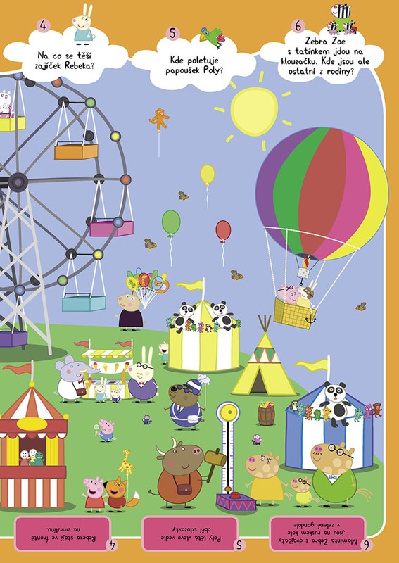 Přidejte se k prasátku Peppě a objevujte společně její pestrý svět! V knížce najdete scénky z oslavy narozenin, ze hřiště, z pouti a z pohádkového zámku. Na každé stránce je spousta a spousta obrázků k prohlížení a hledání a s nimi spojené veselé hádanky a úkoly.