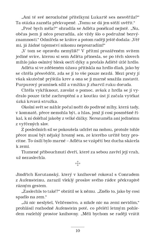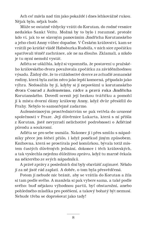 Šlechtic Adam ze Zbraslavi je po krátkém pobytu v klášteře opět povolán k pražskému královskému dvoru. O pomoc ho tentokrát požádá jeho chráněnka Alžběta, která se strachuje o život své tety Elišky Přemyslovny. Dvě z jejích dvorních dam za podivných okolností zemřely – a zdá se, že nešlo jen o zločiny z vášně. V královské rodině totiž začíná zuřit boj o korunu. Podaří se Adamovi ze Zbraslavi rozplést politické pozadí zločinů a dopadnout pachatele dřív, než sáhne smrt i po samotné Přemyslovně?