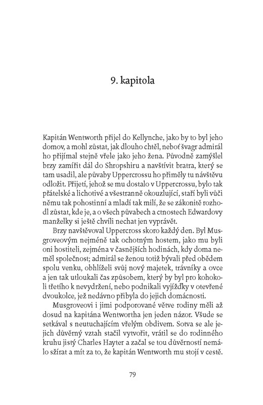 Když se ale po osmi letech znovu setkají, je všechno jinak. Sira Waltera jeho vlastní neschopnost a marnotratnost přinutila pronajmout rodinné sídlo a přestěhovat se do Bathu a kapitán Wentworth se jako bohatý muž se zvučným jménem vrací právě do jeho domu po boku své sestry a jejího manžela. Probudí se staré city, když se oba mladí lidé opět shledají? Nebo je osm let odloučení pro lásku už moc dlouhá doba?