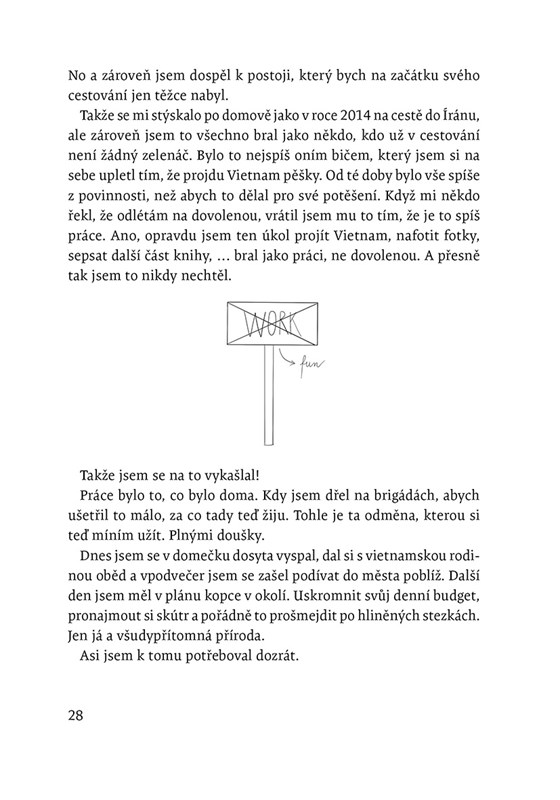 Dobrodruh Lukáš Matějček se v pokračování úspěšného, částečně autobiografického románu v průběhu tří let vydává znovu a znovu do dalekých krajin. V Asii a Africe stráví několik měsíců a navštíví osmnáct států. Prostopuje rýžová pole Vietnamu, vyhostí ho z Tádžikistánu a vystoupá na třetí nejvyšší horu afrického kontinentu. No a když zrovna necestuje, rozváží v Praze pizzu a do toho vede úspěšnou módní značku Bagind, jejíž výrobky nosí denně tisíce Čechů. Podle něj totiž stačí skočit, létat se naučíte pak.