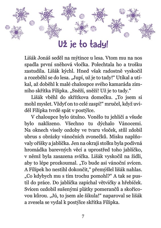 Už je to tady! Jakmile lišáka Jonáše zastudila na čumáčku první sněhová vločka, hned věděl, že nastal kouzelný zimní čas. A to znamená jediné! On i jeho kamarád skřítek Filípek prožijí veliké předvánoční dobrodružství, kdy společně s dětmi z městečka, s čarodějkou Zlobivkou, strašidlem Béďou a moudrým elfem budou pátrat po tom nejkrásnějším vánočním dárečku.
