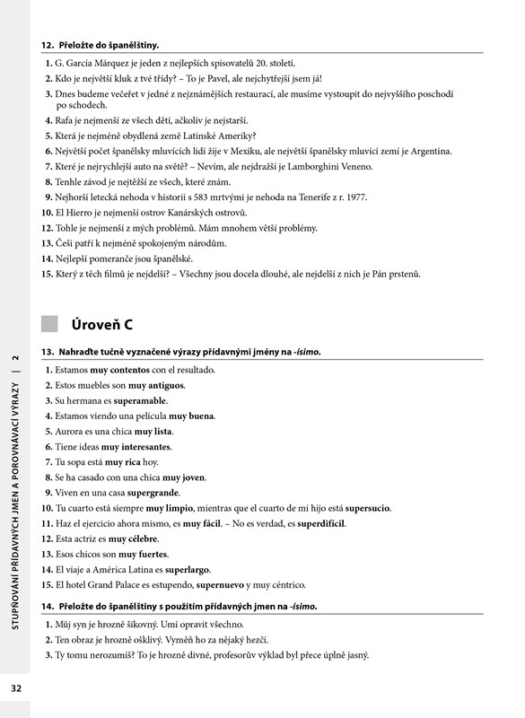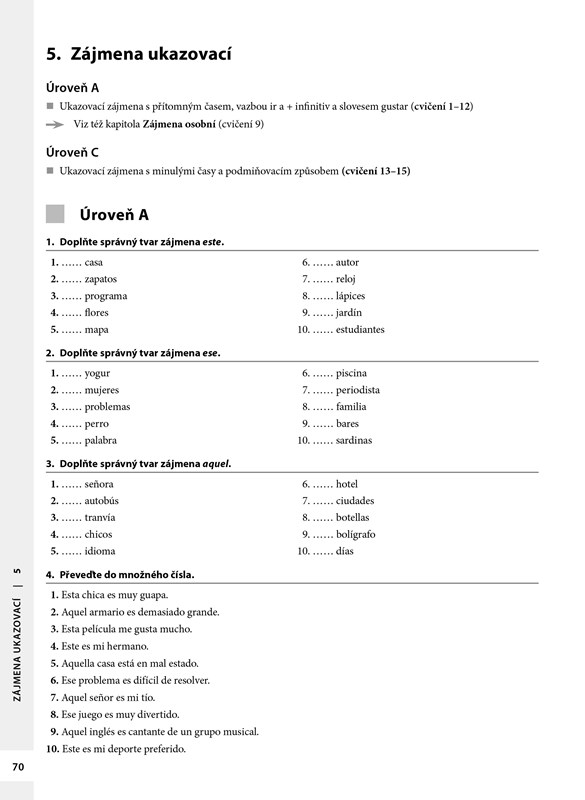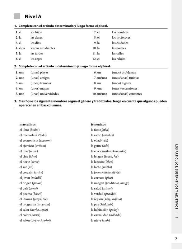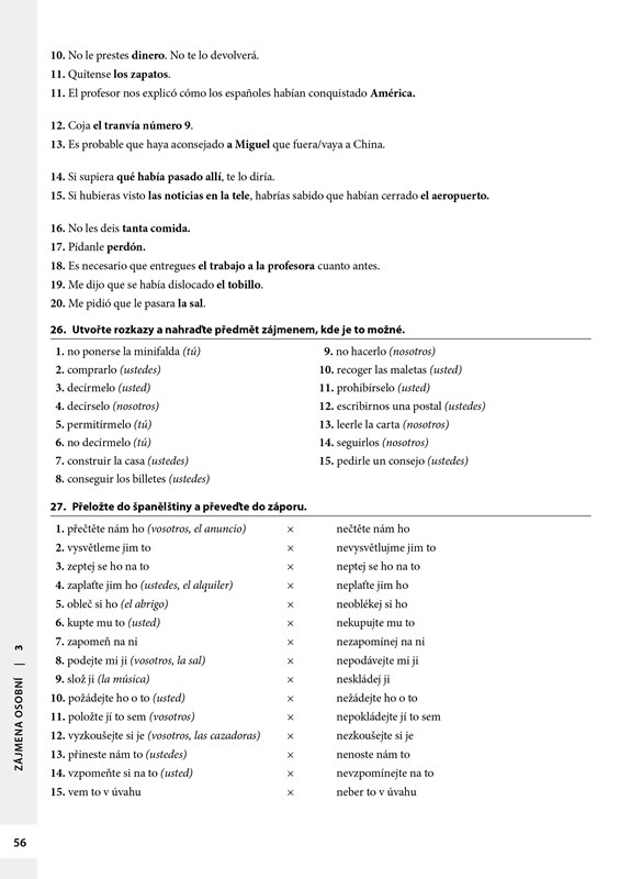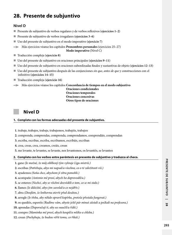Publikace je určena studentům španělštiny, kteří si chtějí procvičit teoretické znalosti jazyka. Cvičebnice je rozdělena podle slovních druhů, nejvíce prostoru je věnováno slovesu a slovesným tvarům. Kapitoly se dále člení podle úrovně obtížnosti, a to jak podle obtížnosti jevu, tak podle slovesných tvarů, které daný jev provázejí. Poslední kapitola se soustředí na procvičení specifických jevů, které bývají pro Čechy problematické.