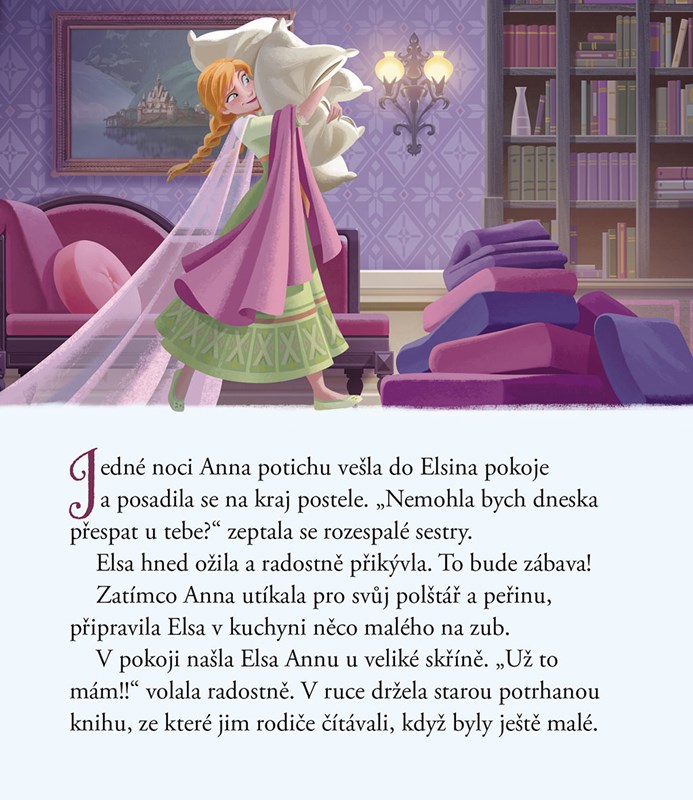Uložte se do postýlky a nechte si přečíst pohádku o tom, jak Anna, Elsa, Olaf a Sven strávili společnou noc!