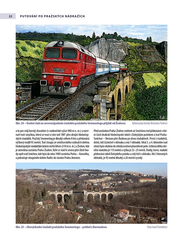 Praha je naším nejvýznamnějším železničním uzlem a jeho historie je nesmírně bohatá a zajímavá. Zdejší železnice prošla fascinujícím vývojem, na jehož konci stálo zapojení do celorepublikové i mezinárodní sítě. Kudy vedly první tratě? Co předcházelo jejich výstavbě? A jak se v proudu času měnila malebná pražská nádraží? To a mnoho dalšího se dočtete v poutavých, historicky přesných textech, které doprovázejí ilustrace Bohuslava Fultnera i známého akademického malíře Jiřího Boudy. Nechybí také spousta fotografií, reprodukce jízdenek a přehledné mapky.
